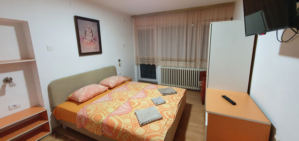 Francuski ležaj, običan ležaj, kuhinja, kablovska TV, kupatilo, terasa i parking.